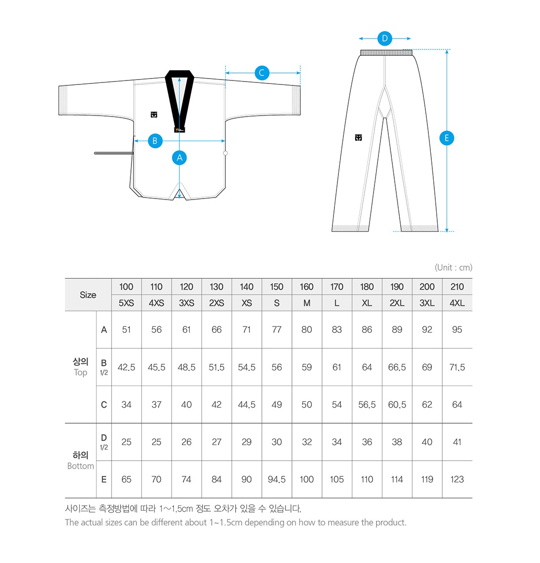 120 3XS, 130 2XS, 140 XS, 150 S, 160 M, 170 L, 180 XL, 190 XXL, 200 XXXL