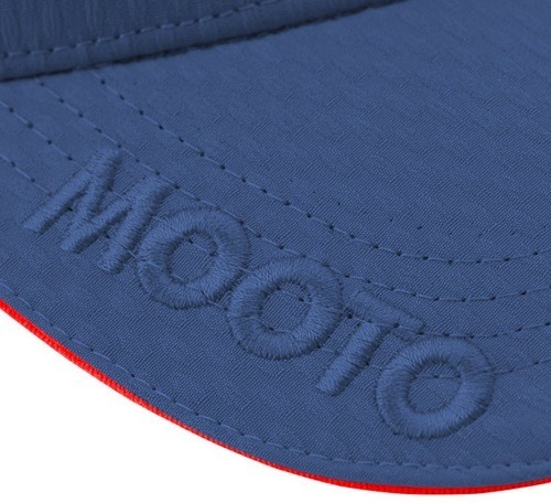 Gorra polyester 100%  color azul, con logo de MOOTO bordado en frontal y lateral. Talla única